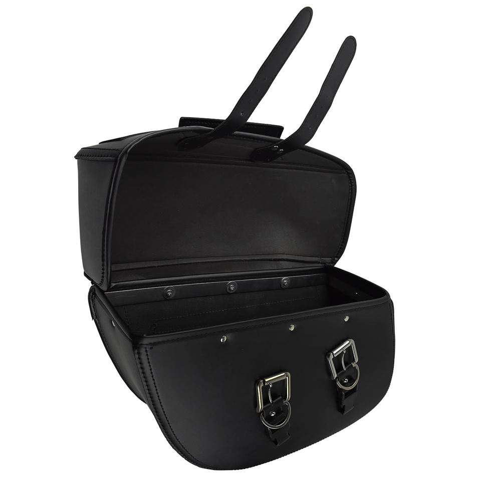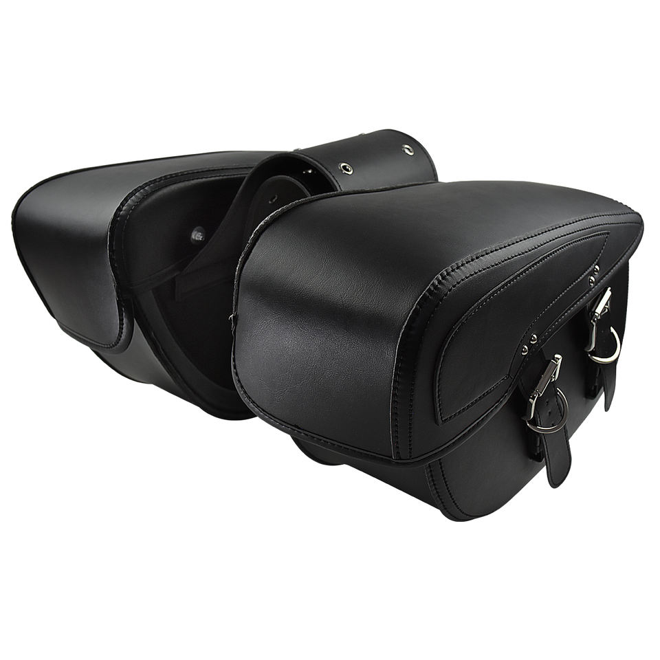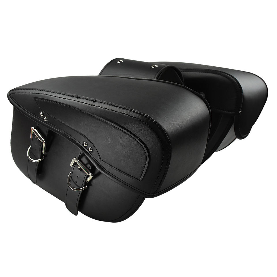 กระเป๋าข้างมอเตอร์ไซค์หนังสีดำแบบรักษ์โลก น้ำหนักเบา ขนาด 20-36 ลิตร กันน้ำ พร้อมสายรัดแบบหัวเข็มขัด สำหรับรถครุยเซอร์