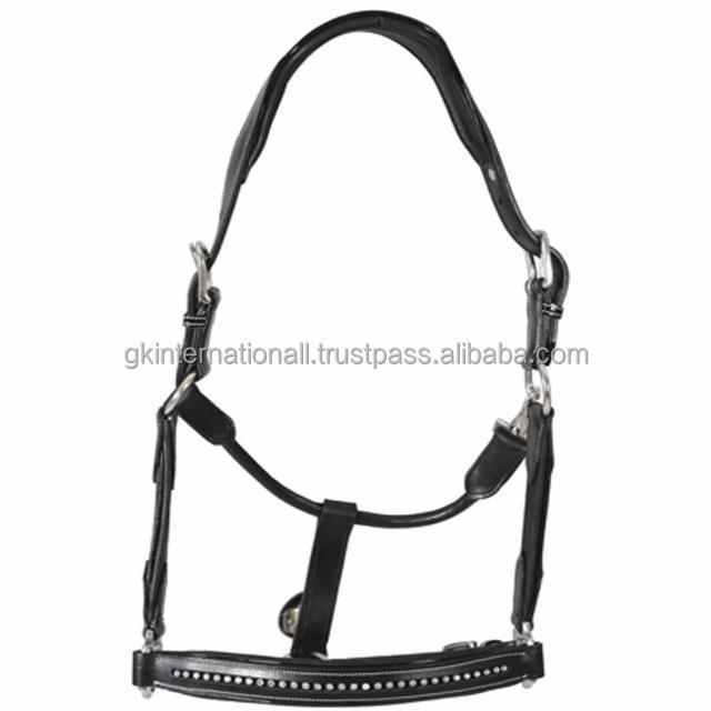 เชือกแขวนคอม้าหนังสีดำพร้อมคริสตัลขี่ม้าตกแต่งเชือกแขวนคอแข่งม้าและอุปกรณ์เสริม