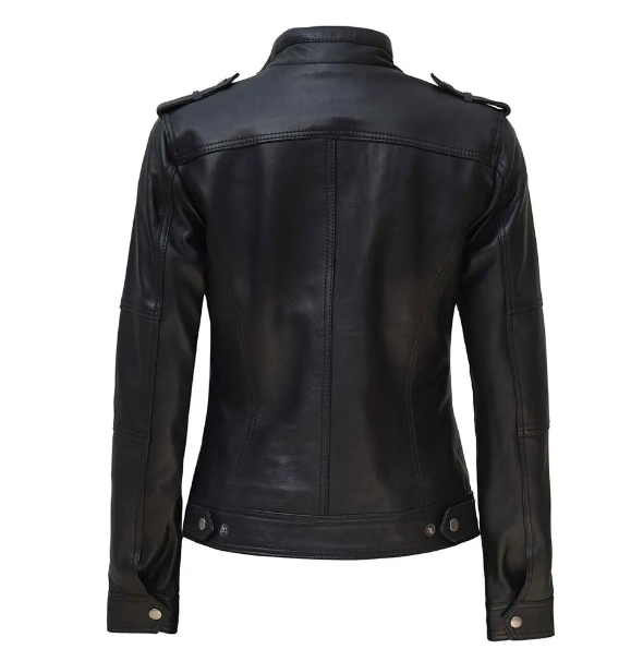 แจ็คเก็ตหนังสีดำสำหรับผู้หญิงแจ็คเก็ตหนังแกะแท้