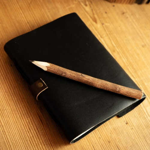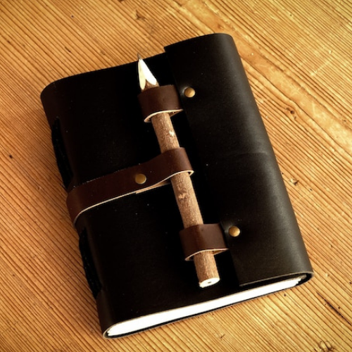วารสารกระดาษโบราณหนังสีดำพร้อมฝาปิดดินสอไม้