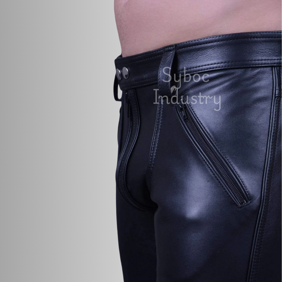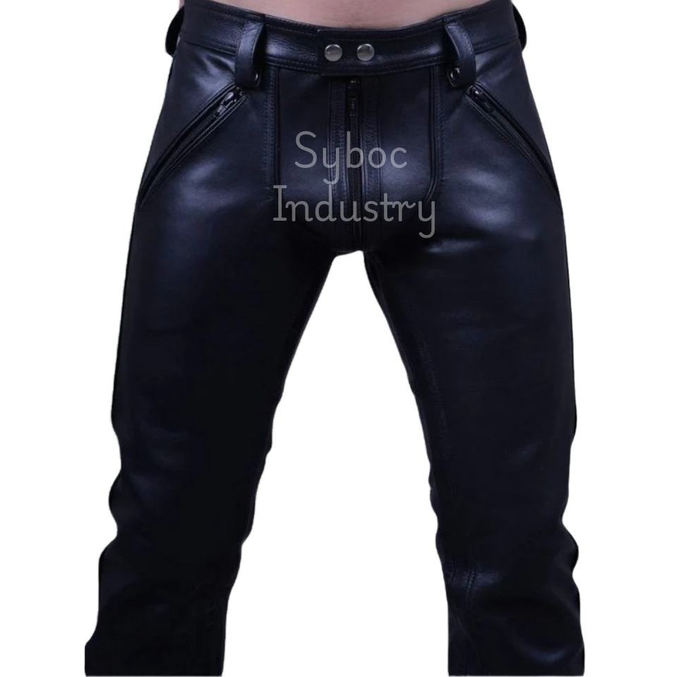 กางเกงหนังสีดำสำหรับผู้ชาย หนังแกะแท้ แบบซิปใหม่ สั่งตัดได้ ไซส์ใหญ่พิเศษ สำหรับผู้ใหญ่
