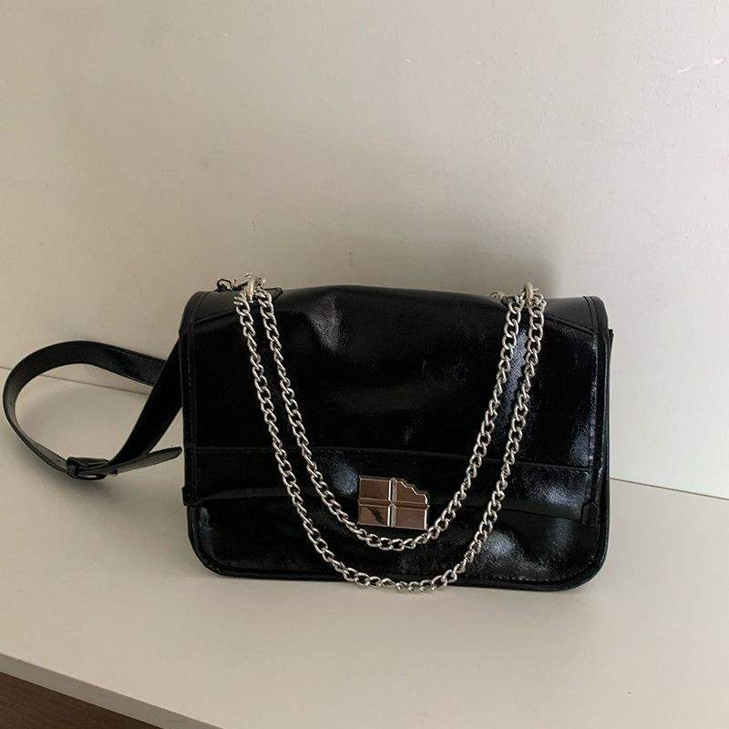 กระเป๋าสะพายหนังสีดำพร้อมสายโซ่ กระเป๋าสะพายข้างแบบแม่เหล็กสำหรับใช้ในชีวิตประจำวัน