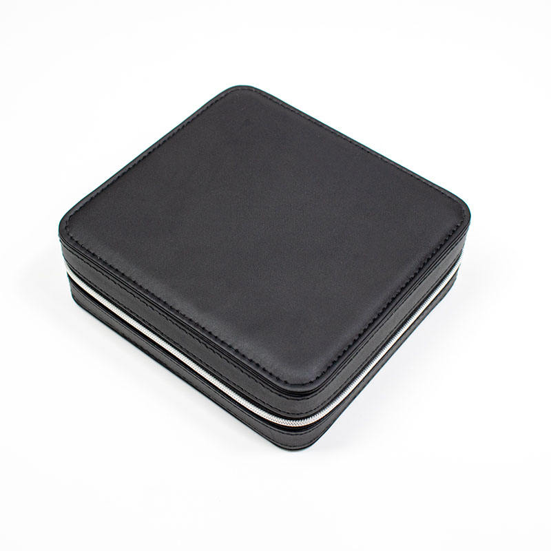 กล่องเครื่องประดับหนังสีดำแบบเรียบง่ายพร้อมสร้อยคอต่างหูซิปและกล่องอุปกรณ์เสริมกล่องเก็บอุปกรณ์เสริมความจุขนาดใหญ่