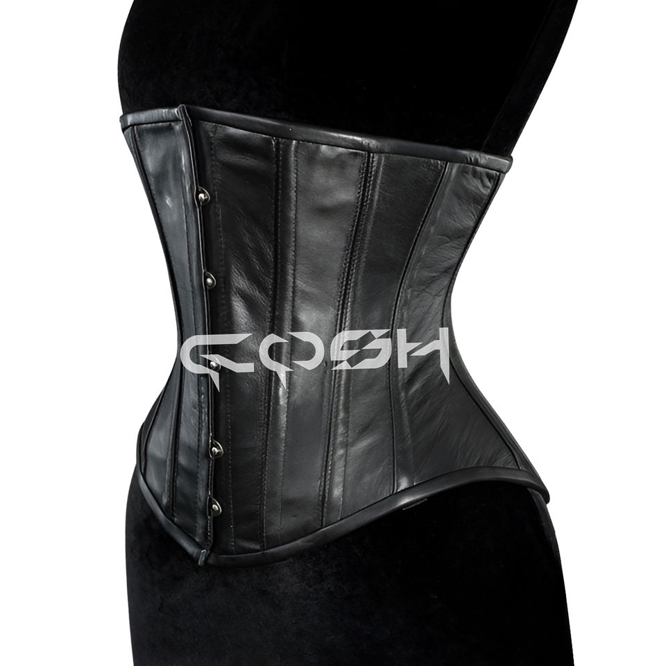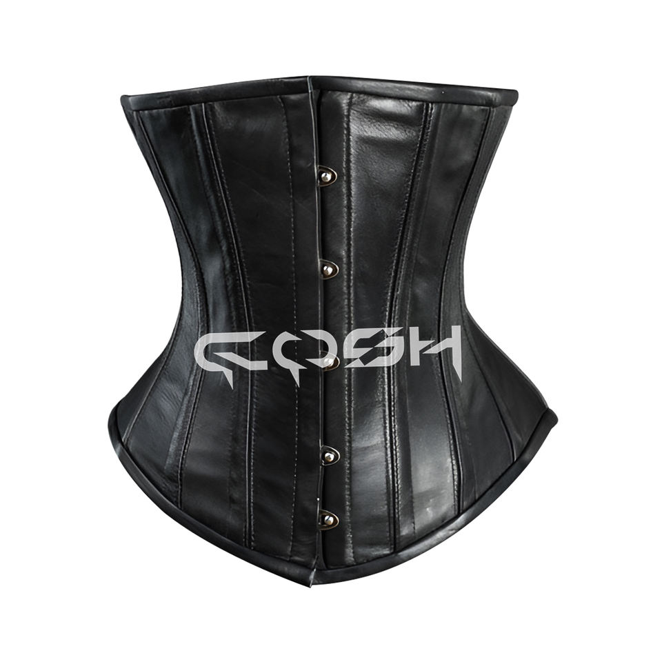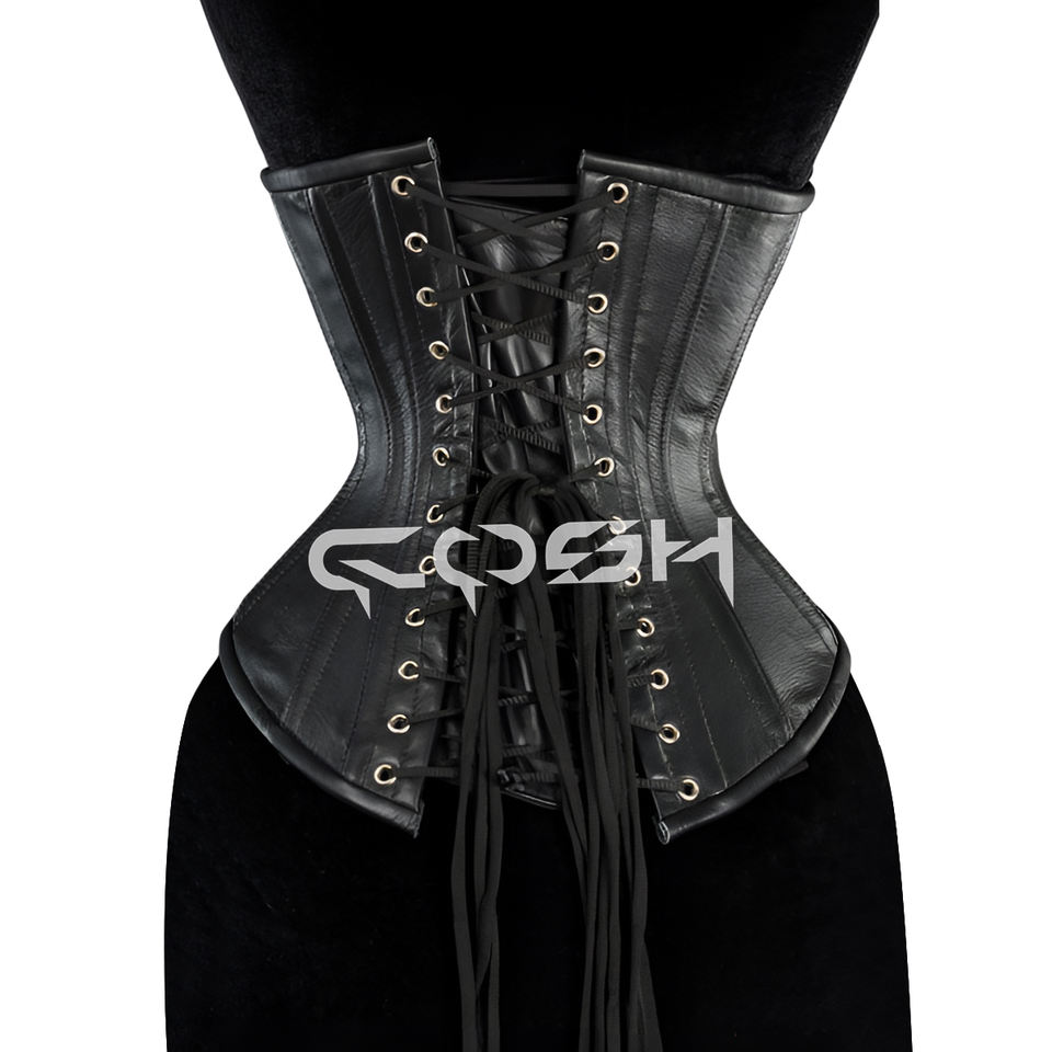 คอร์เซ็ทหนังสีดำแบบรัดใต้หน้าอกพร้อมโครงเหล็กสำหรับการฝึกกระชับเอว | ซื้อเลย