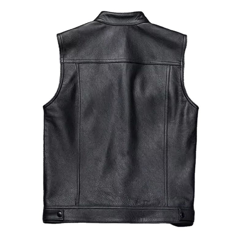 เสื้อกั๊กหนังสีดำแบบมีซิปและกระดุม ระบายอากาศได้ดี คุณภาพสูง สำหรับขี่มอเตอร์ไซค์ในฤดูหนาว สไตล์สั่งทำพิเศษสำหรับผู้ชาย ขายดี