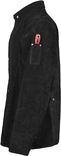 เสื้อแจ็คเก็ตหนังแท้สีดำสำหรับงานเชื่อม หนังวัวแท้แบบหนา ทนทาน เสื้อแจ็คเก็ตนิรภัยสำหรับงานเชื่อม