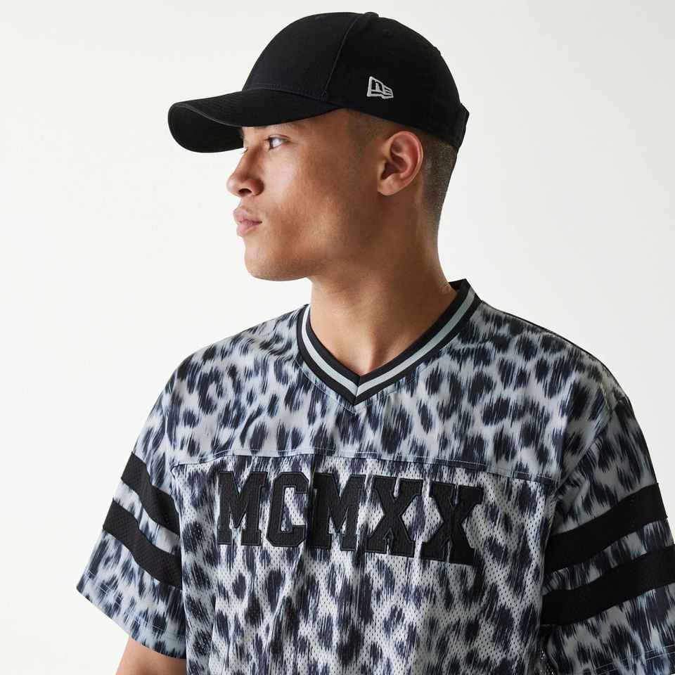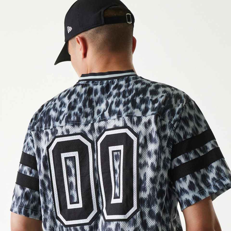 เสื้อเจอร์ซีย์ตาข่ายพิมพ์ลายเสือดำสไตล์เรโทร ทรงบ็อกซี่ แบบครอป เสื้อฟุตบอลอเมริกัน รับสกรีนชื่อและหมายเลข เสื้อเจอร์ซีย์ตาข่ายสำหรับเล่นกีฬา