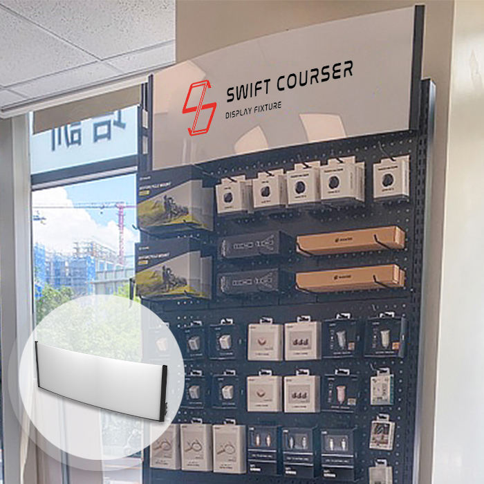 Black Logo Slatwall Display Accessories Rectangle Metal Wall Sign Holder for Brand Store