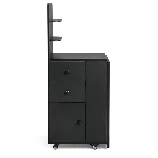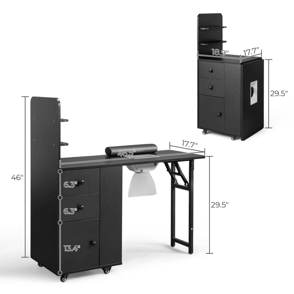 โต๊ะทำเล็บพับได้ MDF สีดำ พร้อมลิ้นชัก 2 ช่อง และบานตู้พร้อมชั้นวางของ