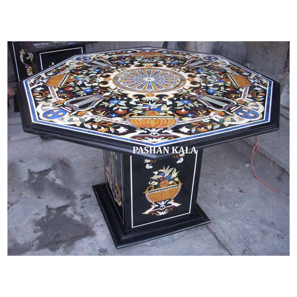 ท็อปโต๊ะตกแต่งบ้านลายดอกไม้ฝังหินอ่อนสีดำ
