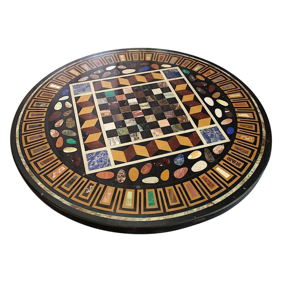 Black Marble Handmade Round Shape With inlaid Chess Pattern Work Table Top Beautiful Stone Inlaid Dining Table Top Indian Table