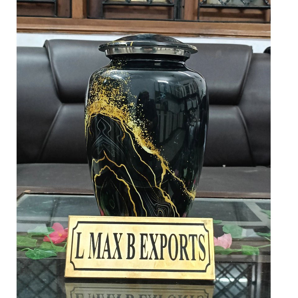 โกศบรรจุอัฐิผู้ใหญ่ อะลูมิเนียม ลายหินอ่อนดำ ขอบทอง