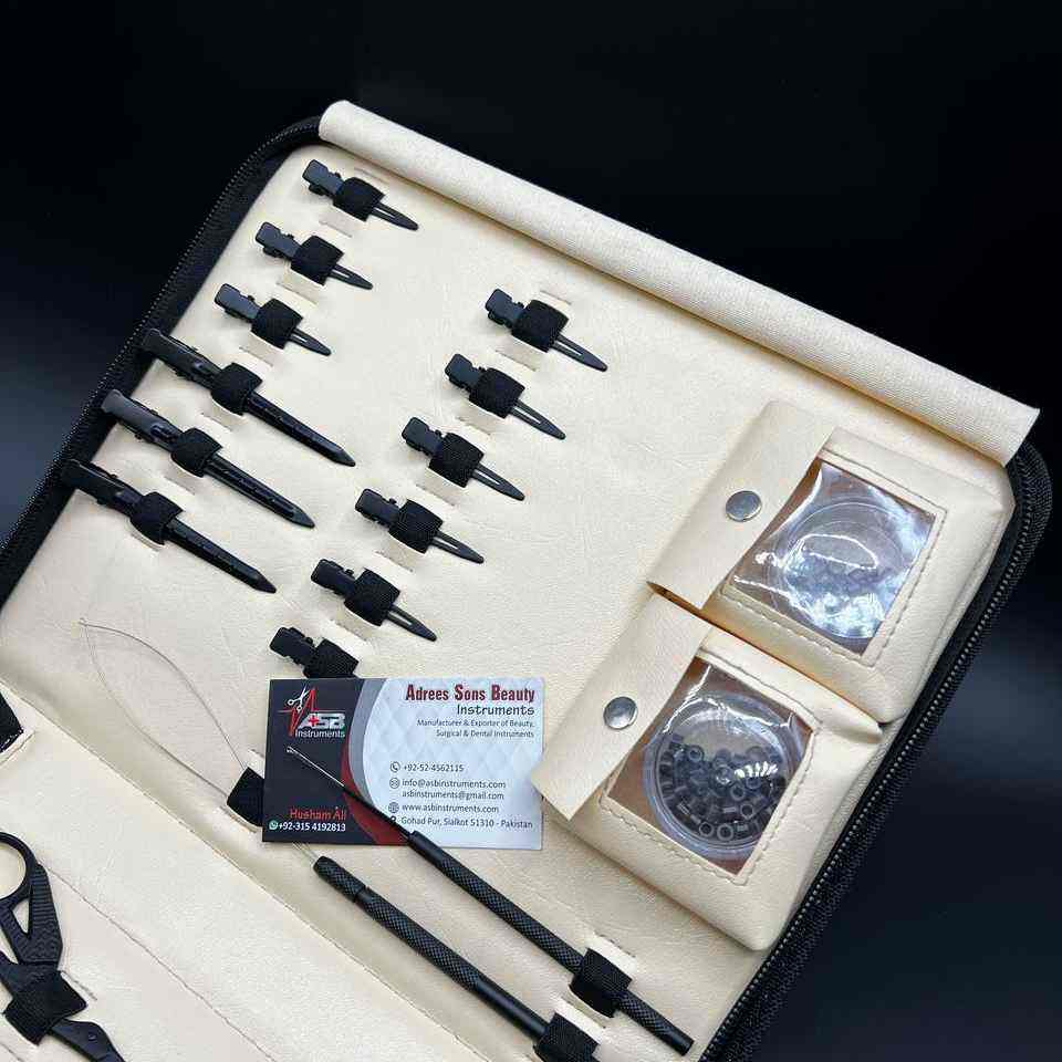 ชุดอุปกรณ์ต่อผมอเนกประสงค์ทำจากสแตนเลสสีดำด้านสำหรับต่อผมแบบมืออาชีพ