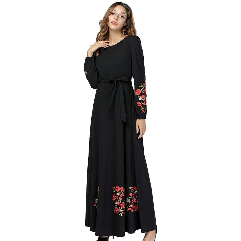ชื่อผลิตภัณฑ์:กระโปรงแม็กซี่สีดำลายดอกไม้วินเทจขนาดใหญ่พิเศษ abaya M