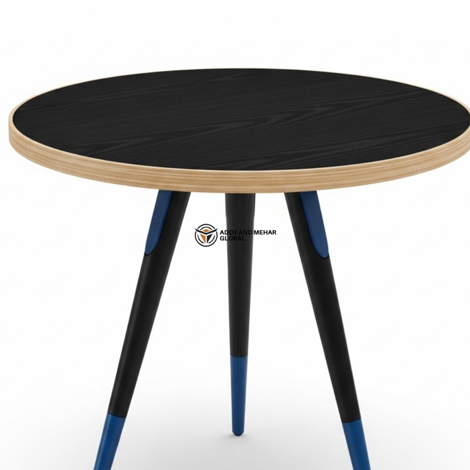 เก้าอี้ไม้สีดำมีนา – เก้าอี้ทรงกลมตกแต่งลายเพ้นท์มือทำด้วยมือ / โต๊ะข้างดีไซน์เนอร์