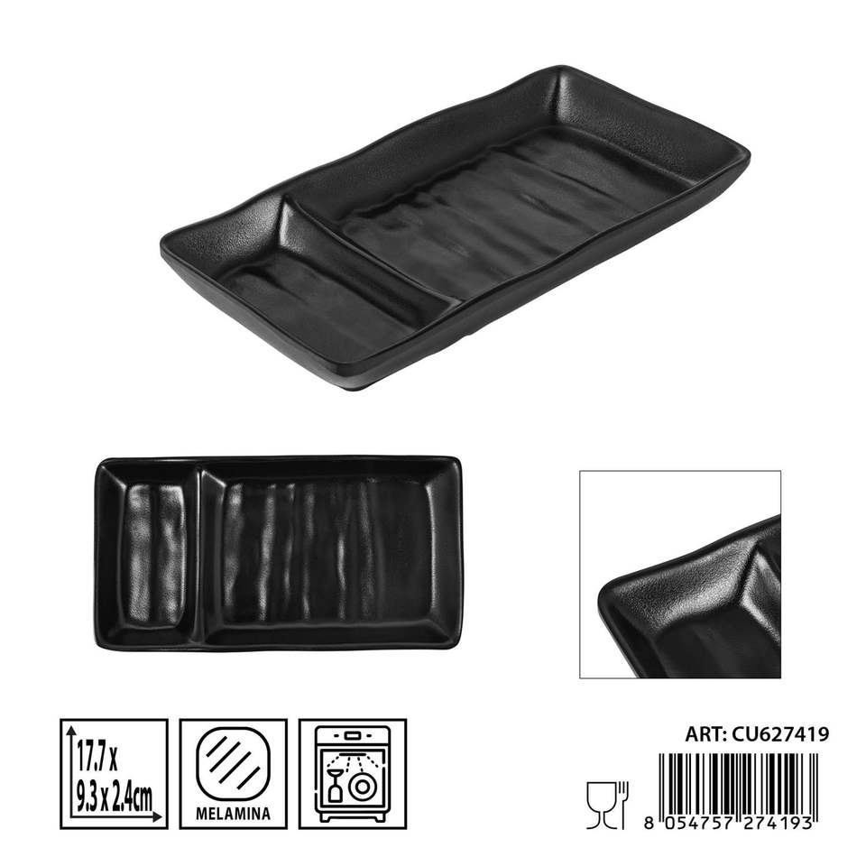 Black Melamine Serving Tray Saucer 17.7x9.3x2.4cm for Kitchen and Tableware
