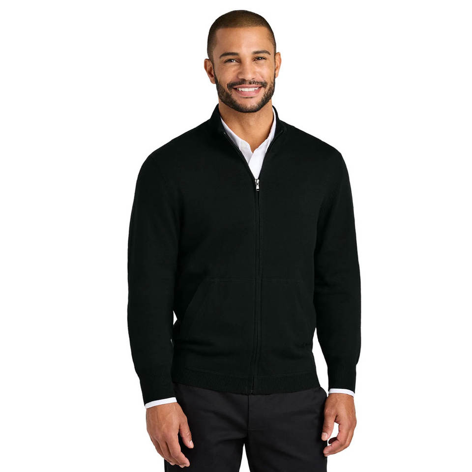 Black Men's 100% COTTON Mock Neck Full Zip Chunky Knit Sweater XL