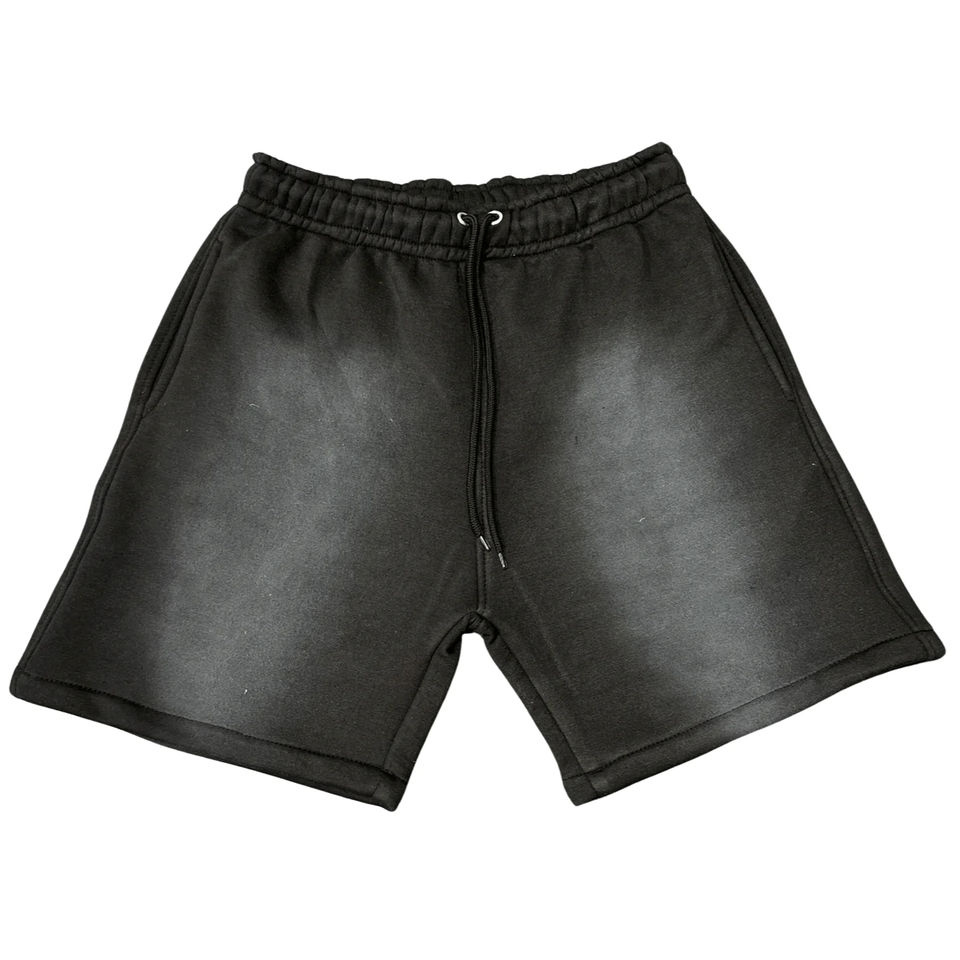 กางเกงขาสั้นผู้ชายสีดำผ้าฟลีซ100% ผ้าฝ้ายแกรม350เทอร์รี่ปรับแต่งดวงอาทิตย์ซีดจางทรงสตรีทวินเทจ