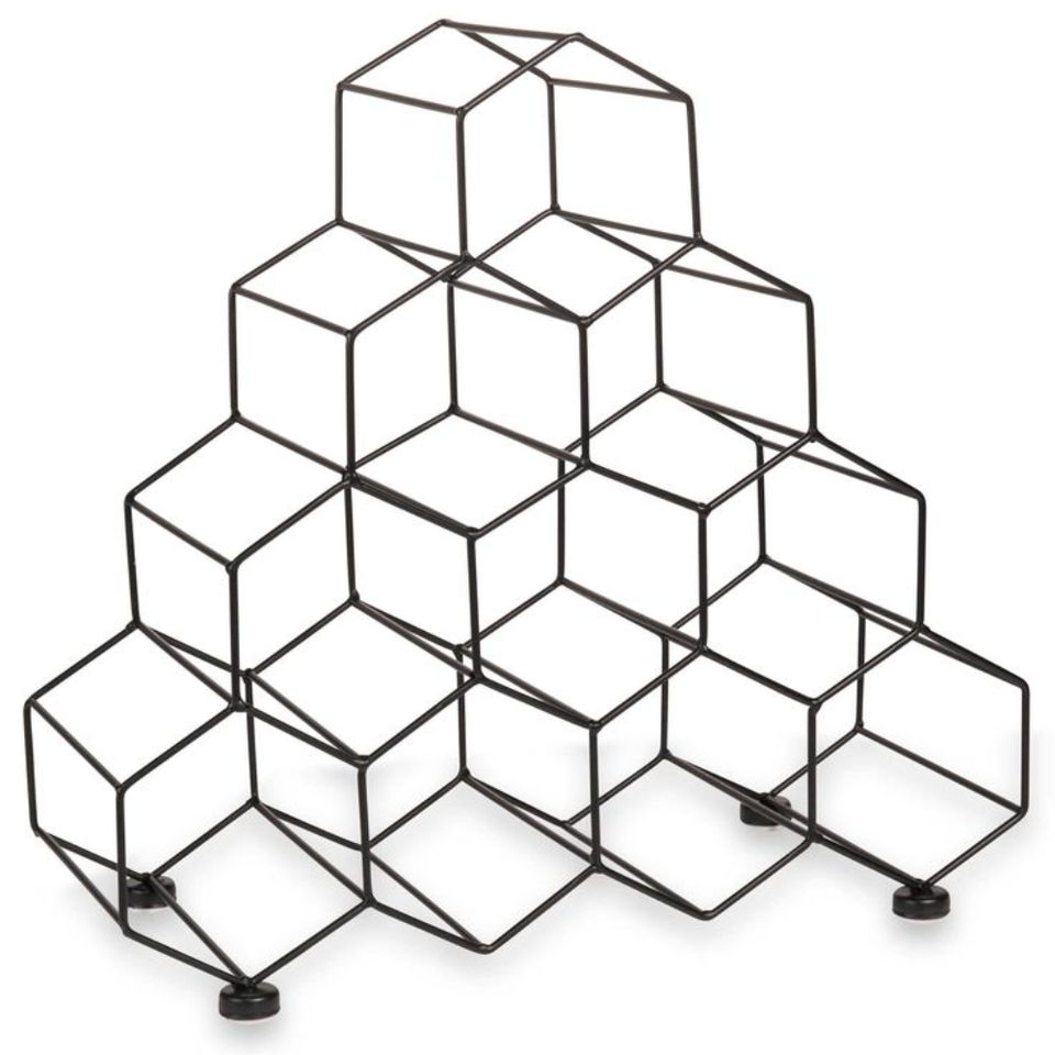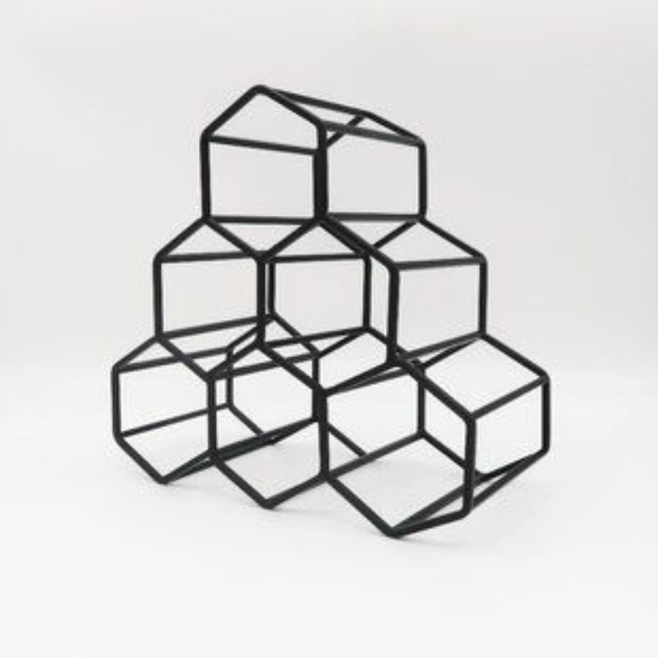 ชั้นวางไวน์โลหะสีดำ 9 ขวด แบบตั้งพื้น รูปทรงเรขาคณิต สำหรับจัดเก็บไวน์บนโต๊ะ เคาน์เตอร์ครัว หรือบาร์