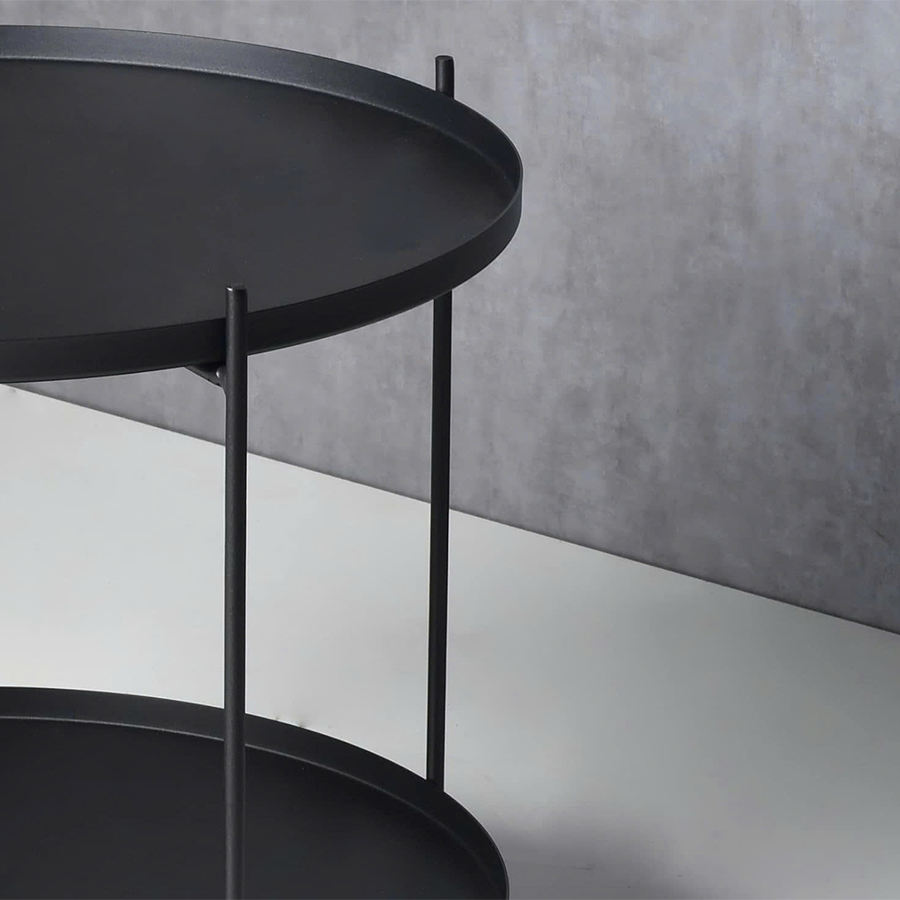 โต๊ะโลหะคู่สีดำขนาดกะทัดรัดพร้อมสัมผัสที่ทันสมัย