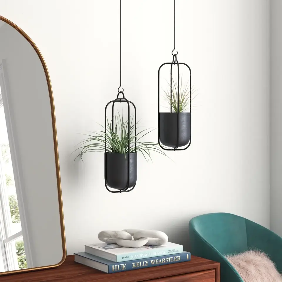 กระถางแขวนเพดานโลหะสีดำสำหรับตกแต่งภายในบ้านสไตล์โมเดิร์น มินิมอล รับผลิตตามแบบ (OEM) ขายส่งจำนวนมาก สไตล์ร่วมสมัย