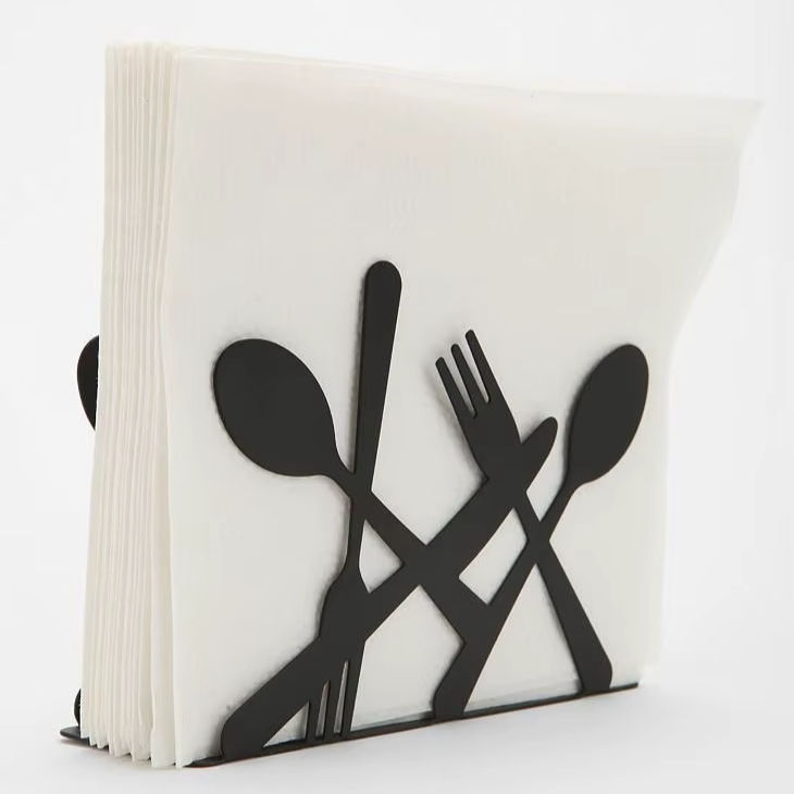 ที่ใส่กระดาษเช็ดปากแบบโลหะสีดำดีไซน์แบบรับประทานอาหารในครัวโต๊ะจัดร้านอาหารที่วางผ้าเช็ดปาก