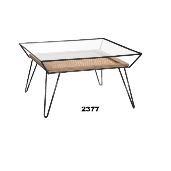 โต๊ะปลายกระจกทำจากโลหะสีดำและหวายสำหรับห้องนั่งเล่นบ้านห้องนอนและห้องวาดภาพ
