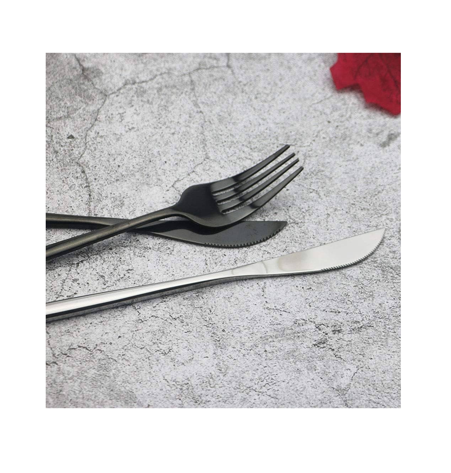 ชุดเครื่องใช้บนโต๊ะอาหารทำจากโลหะสีดำชุดช้อนส้อมและช้อนส้อมชุดช้อนส้อมชุดเครื่องใช้บนโต๊ะอาหารทำจากเหล็กกระจกปรับแต่งสไตล์ได้ชุดเสิร์ฟช้อน