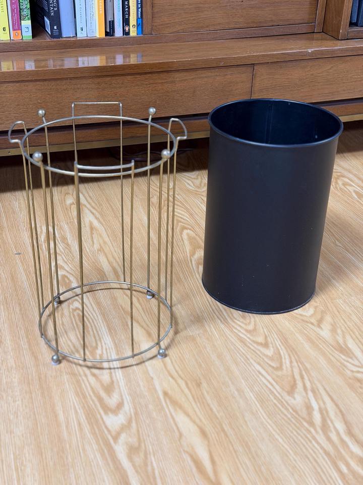 ถังขยะโลหะสีดำพร้อมขาตั้งสีเงิน เหมาะสำหรับบ้านสมัยใหม่และการตกแต่งภายในระดับพรีเมียม จากอินเดีย