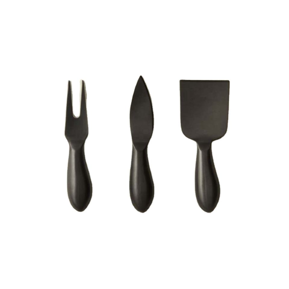 ชุดมีดหั่นชีสแบบสามชิ้นมีดตัดโลหะสีดำชุดชีสสเตนเลสสตีล