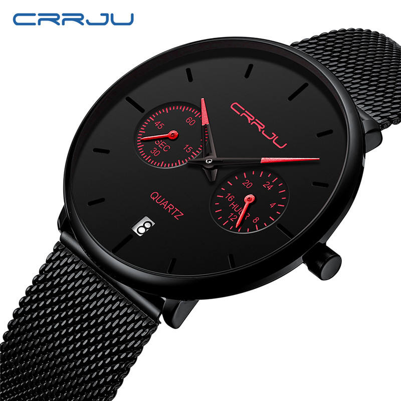 สีดำเรียบง่ายธุรกิจเรียบง่ายบุรุษสตรีเหล็กเต็มรูปแบบลำลองกีฬานาฬิกาควอทซ์กันน้ำปฏิทิน