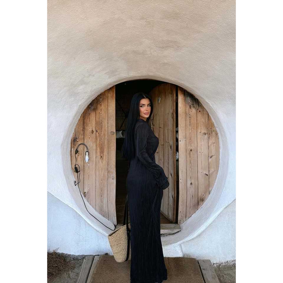 ชุดราตรีหรูหราสีดำ แบรนด์ Mirela ปักลายดอกไม้ แต่งระบาย ทรงเอ็มไพร์ ทรงตรง ไซส์ XL 4XL สำหรับงานปาร์ตี้ฤดูหนาว