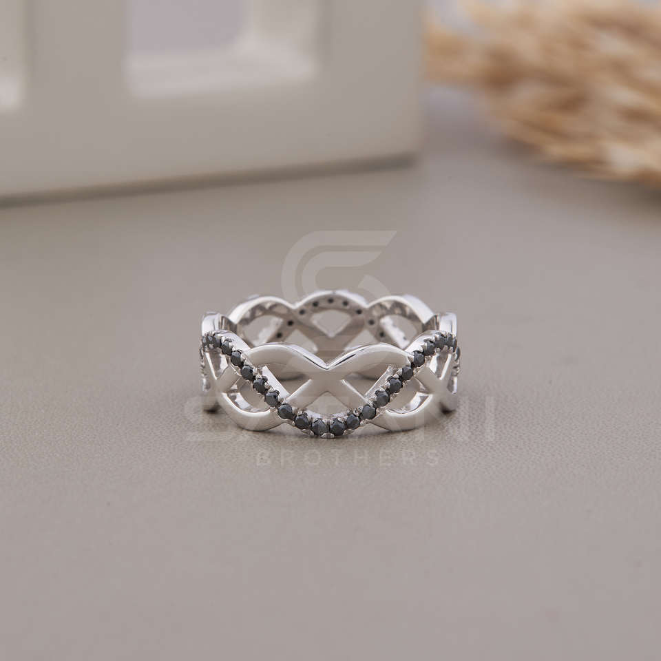 แหวนมอสซาไนต์สีดำทรงอินฟินิตี้ ดีไซน์หรูหรา วงแหวนอินฟินิตี้ ทองคำขาว 18k สไตล์วินเทจ ประดับกากบาท หรูหรา สำหรับเจ้าสาว ของขวัญวันครบรอบ งานหมั้น