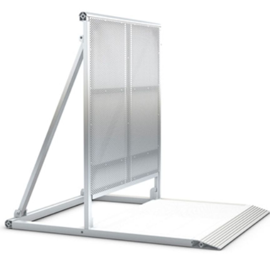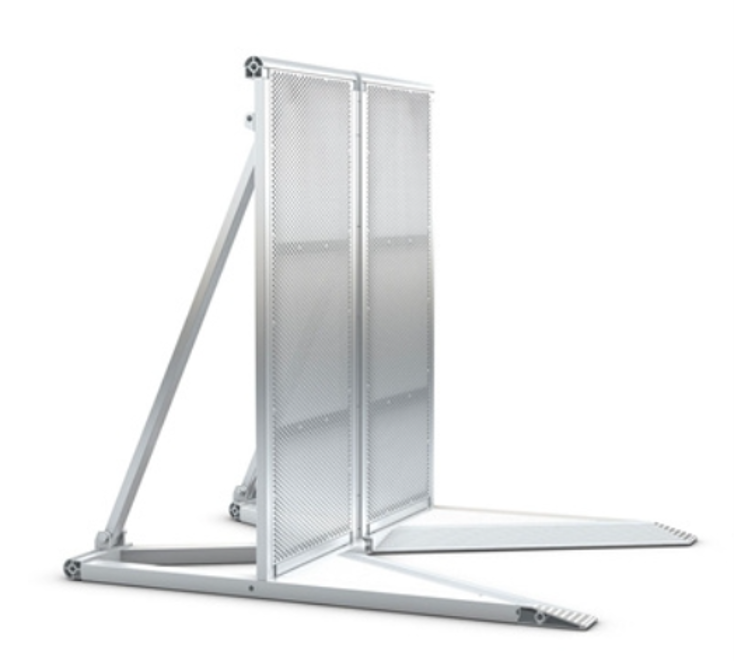 สีดำ Mojo แผงกั้นควบคุมฝูงชนอลูมิเนียมแบบพับได้สำหรับการแสดงบนเวทีกลางแจ้งเพื่อความปลอดภัยในการชนสำหรับคอนเสิร์ต