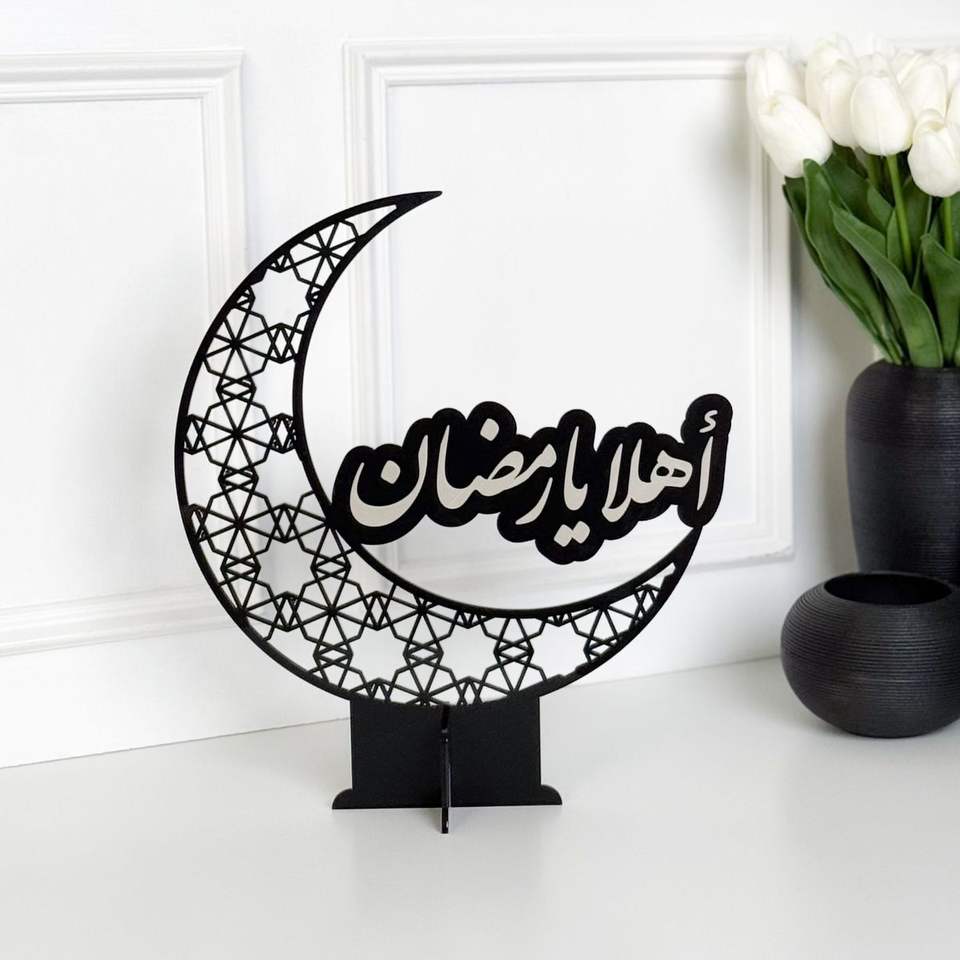 ของตกแต่งโต๊ะรูปโค้งมัสยิดสีดำ พร้อมดีไซน์รูปพระจันทร์เสี้ยวและแสงนุ่มนวลสำหรับการตกแต่งบ้านเพื่อการพึ่งพาทางจิตวิญญาณ