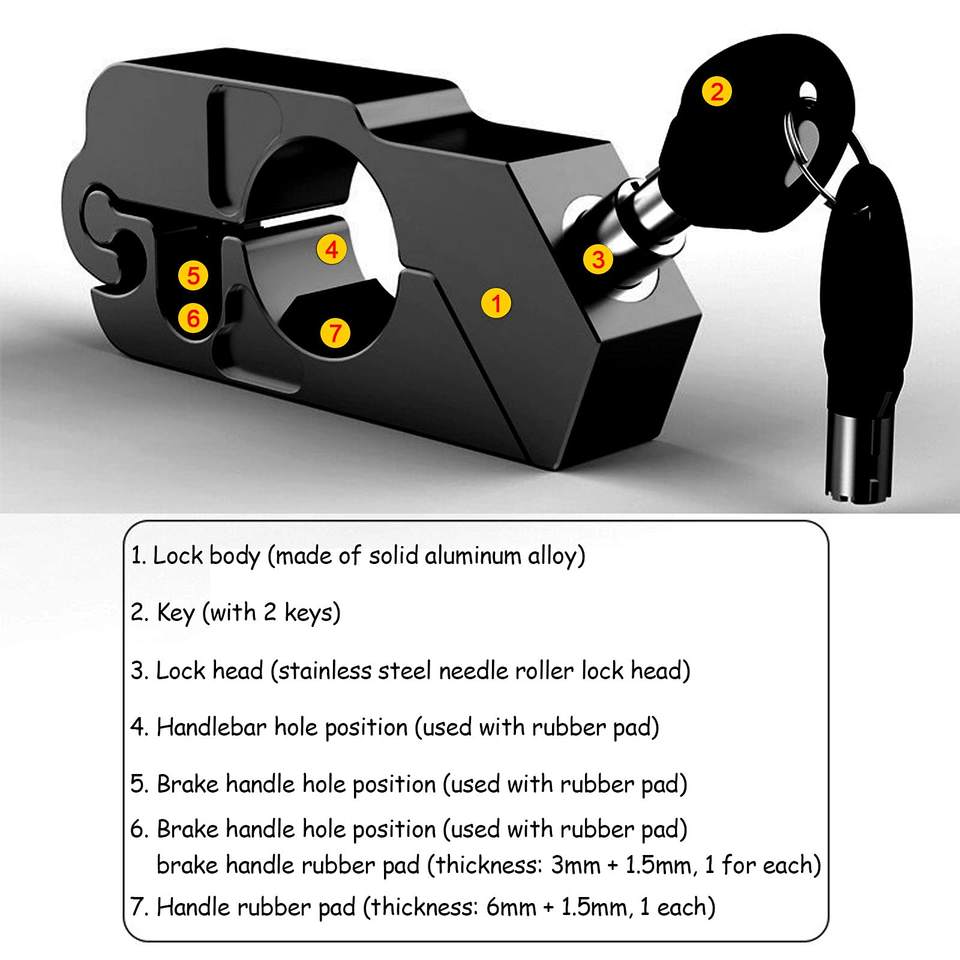 Black Motorcycle Security Locks for Sports Bikes Mountain Bike ATVs with 2 Keys-Scooter Brake Clutch and Handlebar Lock