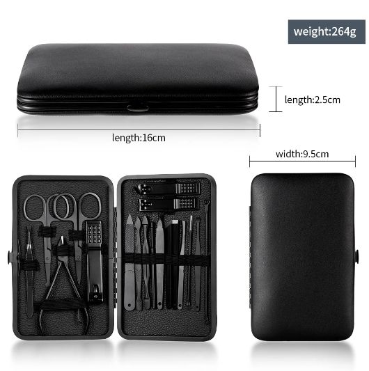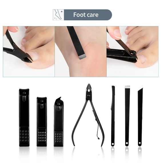 กรรไกรตัดเล็บสีดําชุดสแตนเลสทําเล็บมือกรรไกรตัดเล็บเท้าชุด Nippers ทริมเมอร์ดูแลเครื่องมือกระเป๋าเดินทางชุด