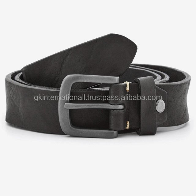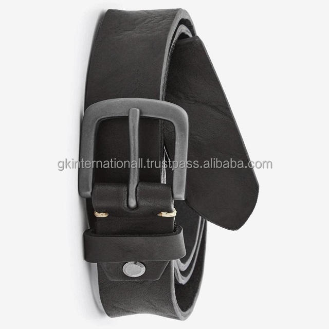 สายรัดลําลองหนังแฟชั่นสําหรับบุรุษสีดํา สายรัดธรรมชาติผักกระจ่าง พร้อมหัวเข็มขัดโลหะสีดําโบราณทุกขนาด