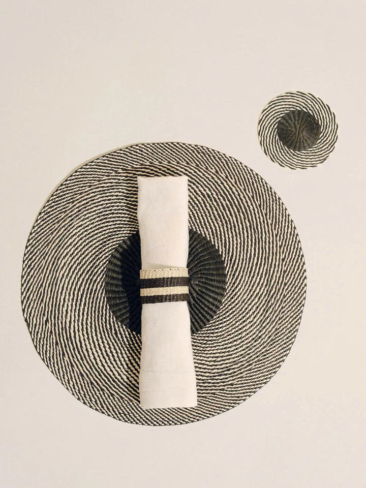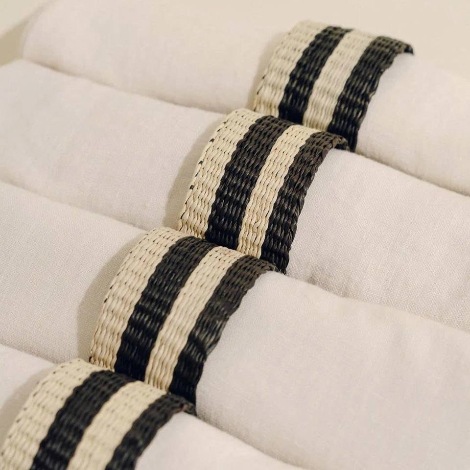 ห่วงรัดผ้าเช็ดปากลายทางธรรมชาติสีดำดีไซน์แบบโมเดิร์นสำหรับตกแต่งโต๊ะแบบมินิมอล