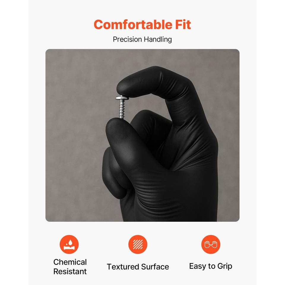 Black Nitrile Disposable Safety Gloves 4.5 Mil Latex & Powder-Free Size L 1000 Count