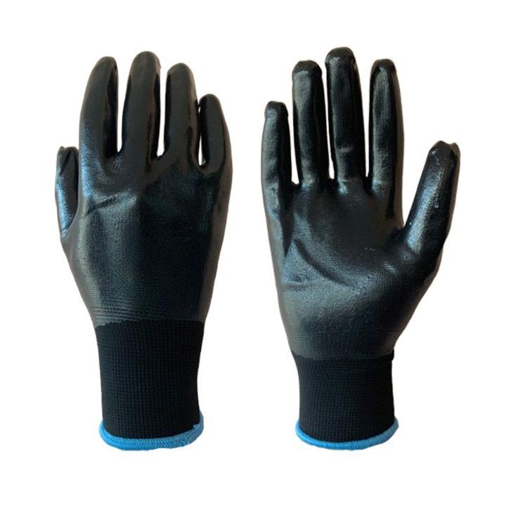 ถุงมือไนไตรล์สีดำเคลือบเต็มตัว ป้องกันการบาด ผลิตในอินเดีย