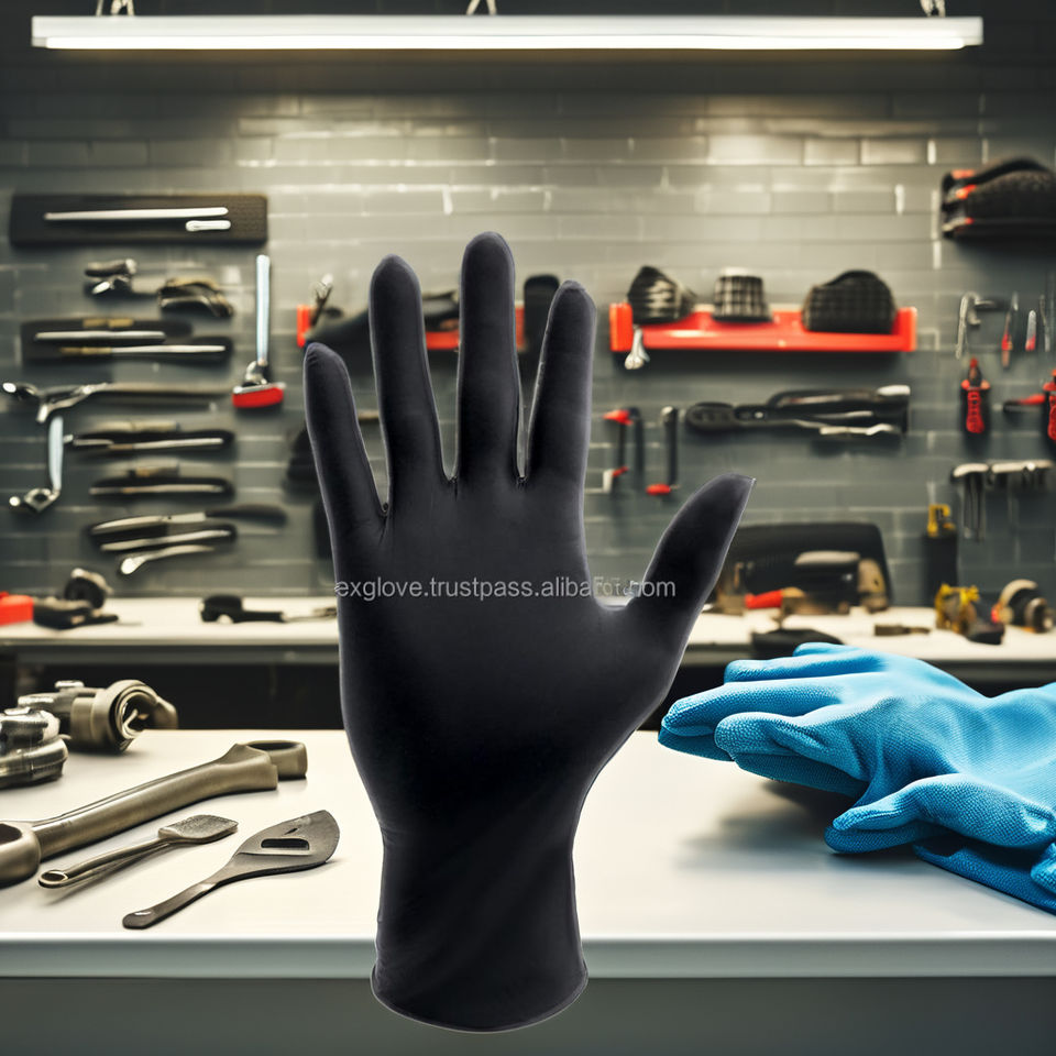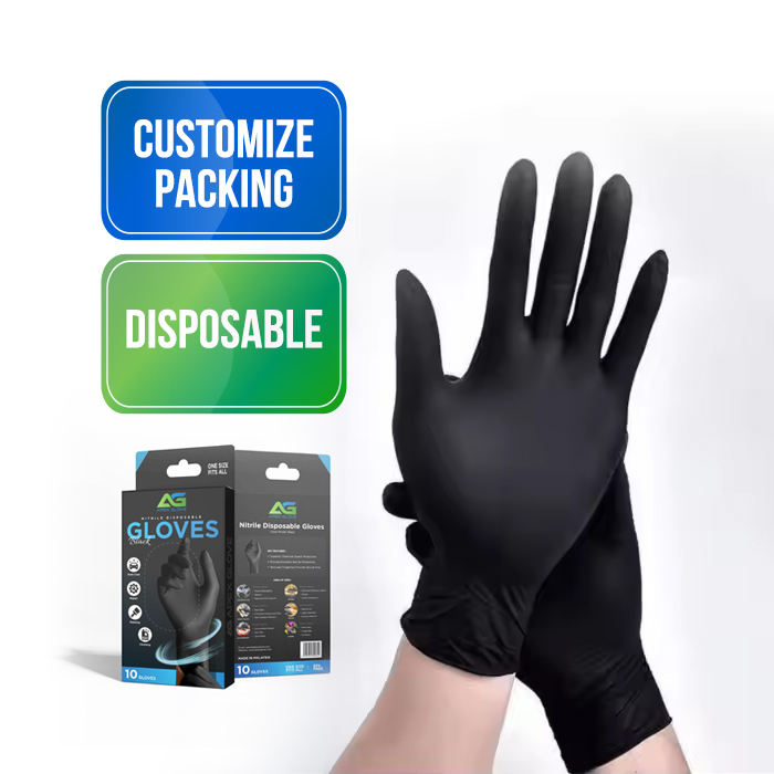 ถุงมือไนไตรล์สีดำแบบไม่มีแป้ง ใช้แล้วทิ้ง บรรจุภัณฑ์แบบกำหนดเอง คุณภาพดี ทนทาน ปลอดภัย มีหลายขนาด