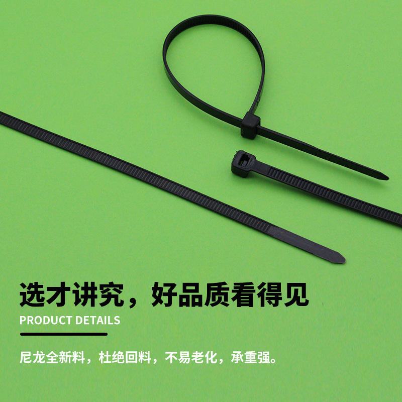 สายรัดเคเบิลไนลอนสีดำแบบล็อคตัวเอง หนา 1.1 มม. เกรดอุตสาหกรรม สำหรับงานวิศวกรรมไฟฟ้า