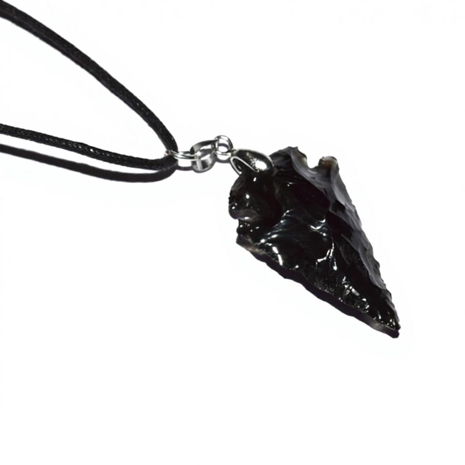 สร้อยคอหัวลูกศรประดับพลอยอาเกตสีดำ-งานศิลปะและของสะสมปะการังสีดำ