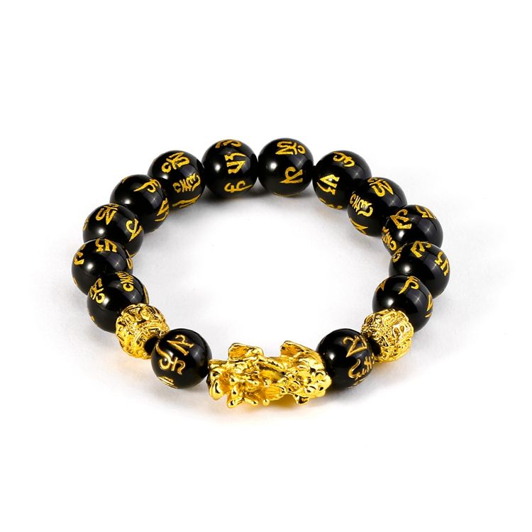 กำไลข้อมือสีทองลูกปัดหินออบซิเดียนฮวงจุ้ย