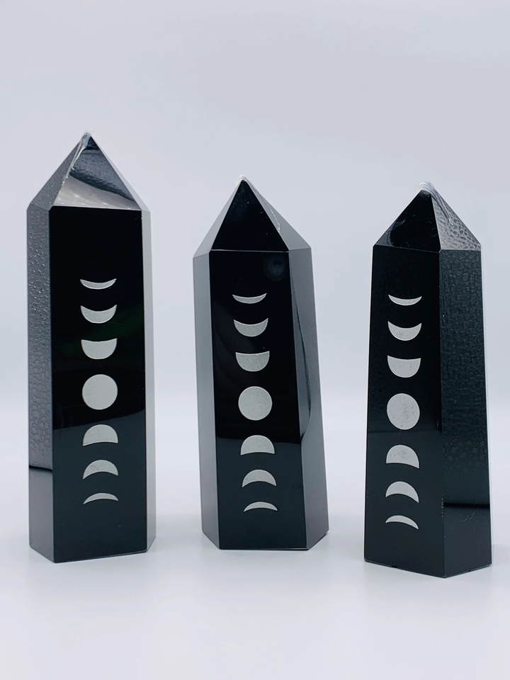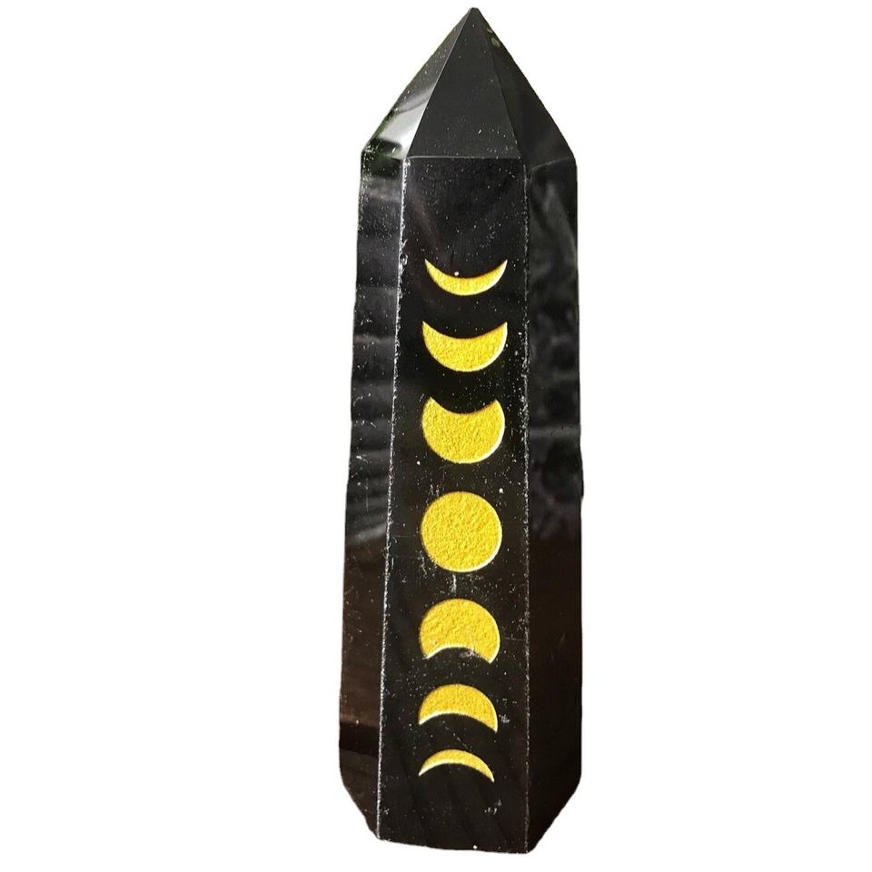 หินออบซิเดียนสีดำ รูปทรงหอคอย คริสตัลบำบัด แสงสีทอง ให้ความรู้สึกแบบแม่มด สำหรับพิธีกรรมทางพุทธศาสนา พระจันทร์เต็มดวง พระจันทร์เสี้ยว