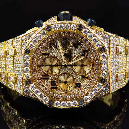 Black Ocean Jewels A.P. 3 Crone VVS Moissanite Yellow Tone Alloy Stainless Steel Quartz Glass Luxury Limited Edition Men's Watch
