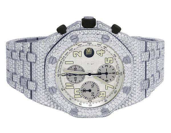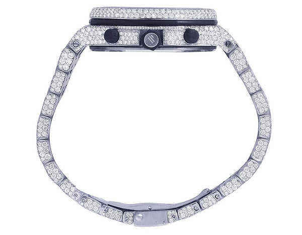 นาฬิกาข้อมือผู้ชาย BOJ A.P.036 หน้าปัดสีขาว ตัวอักษรภาษาอังกฤษ ระบบควอตซ์ ประดับเพชร VVS และมอสซาไนต์ สายสแตนเลส ราคาประหยัด