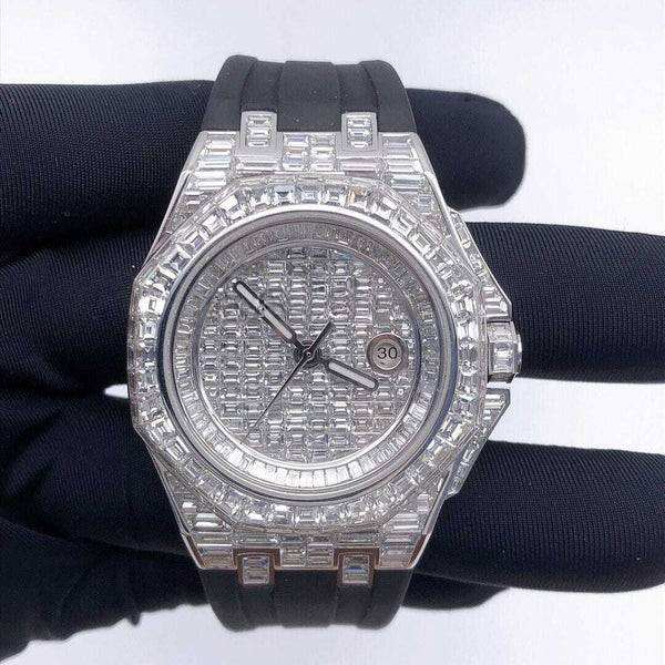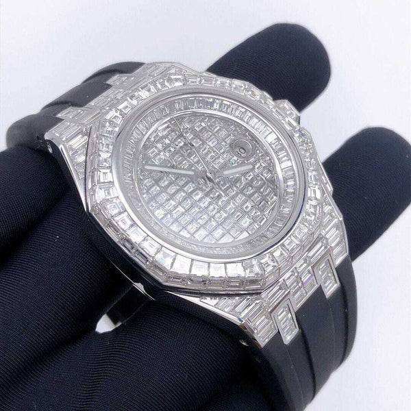 แบล็คโอเชียนจิวเวลส์ เอ.พี. นาฬิกาข้อมือสแตนเลสสตีลคุณภาพพรีเมียม จัมโบ้ ประดับเพชรโมอิสซาไนต์ทรงบาแกตต์ ขนาด 41 มม. กันน้ำ 3 บาร์