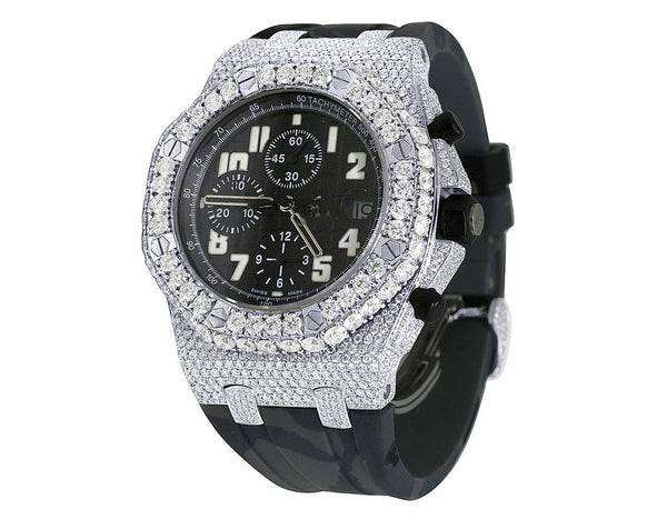 แบล็คโอเชียนจิวเวลส์ เอ.พี. นาฬิกาจัมโบ้ VVS มอยส์ซาไนต์ โครโนกราฟ ตัวเรือนโลหะผสม สายสแตนเลส สตีล ระบบควอตซ์ กันน้ำ 3BAR กระจกกันน้ำ